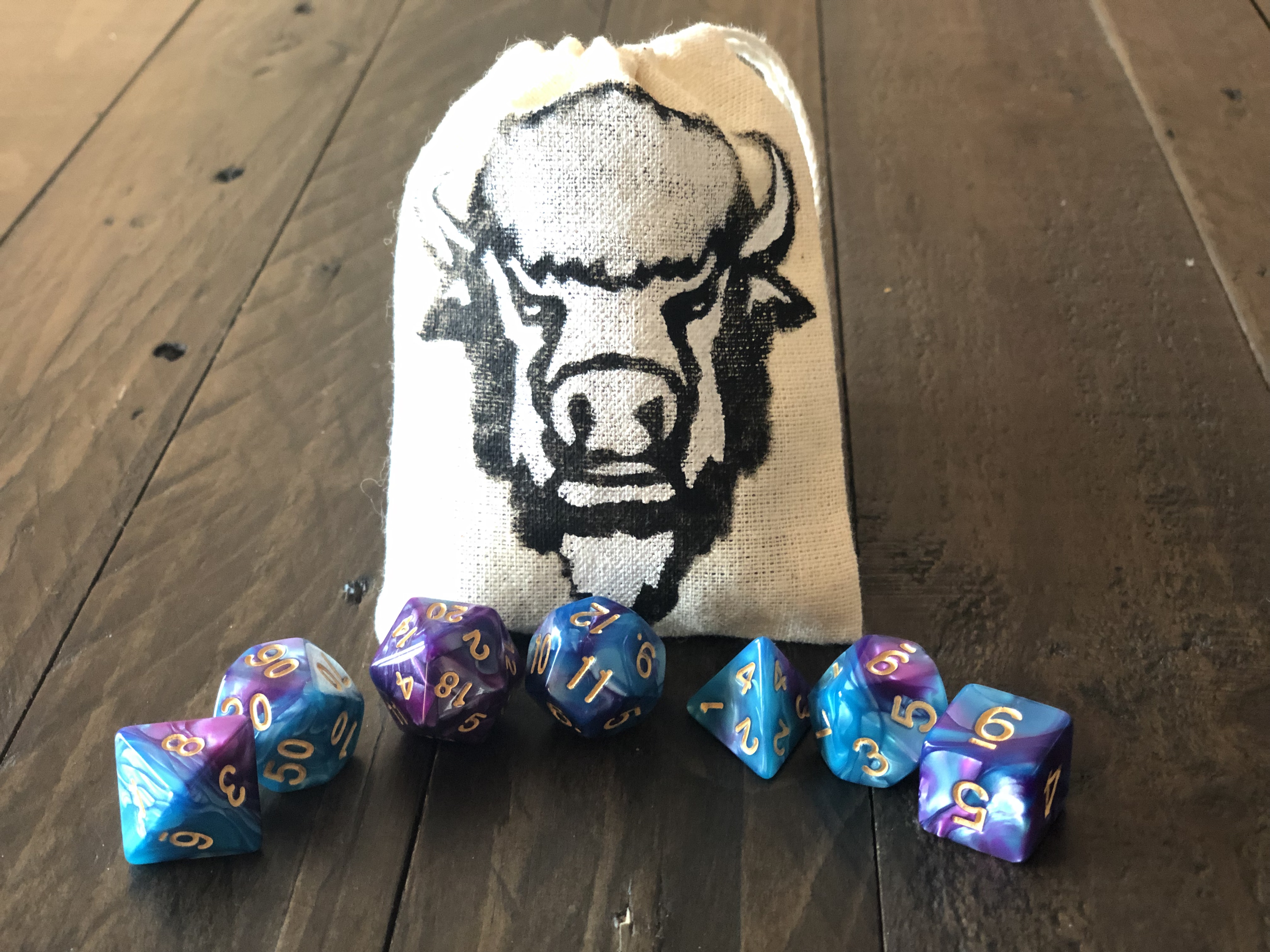 We’ve been running at full speed toward a lot of different goals and things have definitely progressed nicely! We launched our Etsy shop in order to get the word out there and to start working on our custom items. So far the offering is modest, with our first week open we’ve had an array of dice sets available, with each set coming with a custom The Rusty Bison traveling bag. We want to make sure what we offer is the best, and easiest, it can possibly be – so our mission is to make sure our prices are great and that we’ll always include Free Shipping for our stores. No one wants to get excited about something, only to find out that it’s going to be twice as much after loading your information in for shipping estimates.