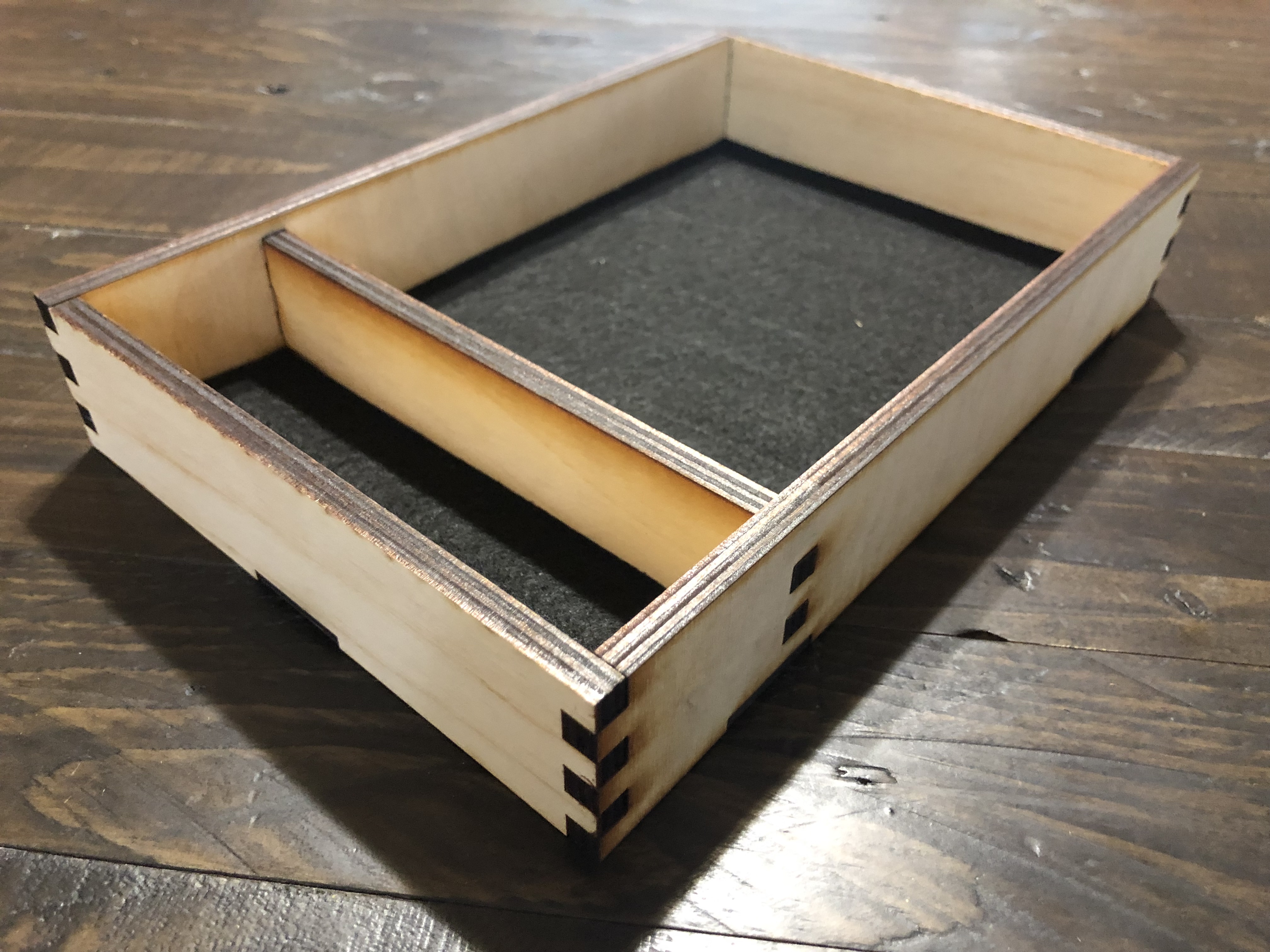In about a minute of snapping and tapping, you get your tray. Put together, it becomes this actually quite sexy and Rustic box: